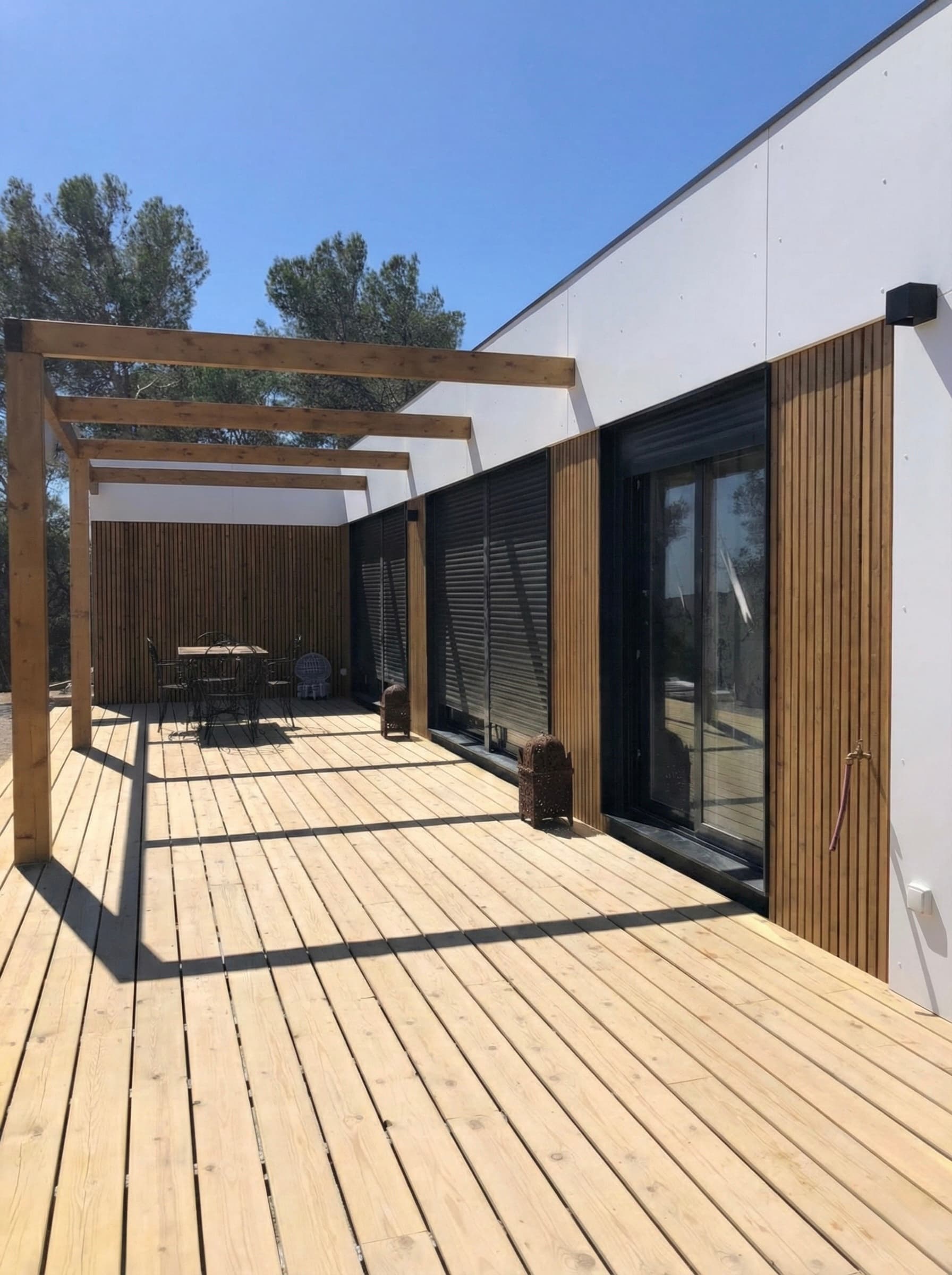 Residencia mediterránea de gran formato, diseñada para maximizar la luz natural y las vistas al entorno. Construcción in situ de altas prestaciones.